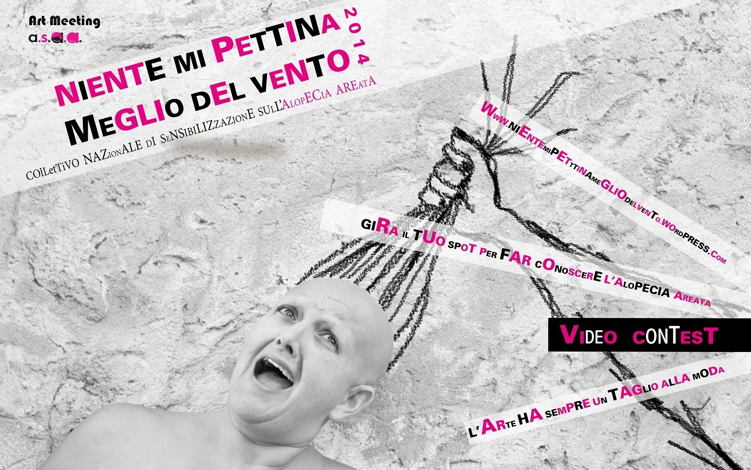 “Niente mi pettina meglio del vento” nasce con lo scopo di dare visibilità all’Alopecia Areata e di offrire attraverso l’arte un’informazione alternativa volta a sopperire la carenza di cultura sulla patologia e sensibilizzare l’opinione pubblica.